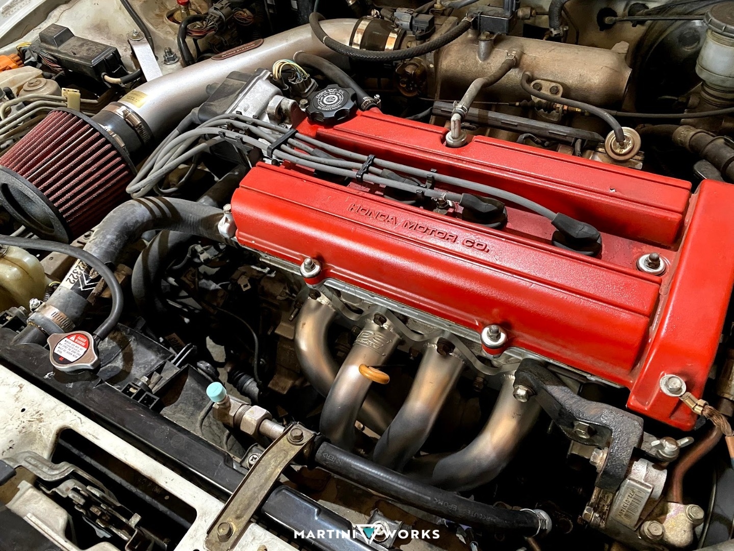B18b engine with bolt ons and full suspension on some tires.
