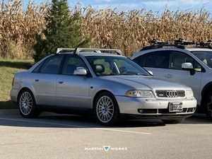 This is my 2006 Audi a3, I’m running a stock internal ea113 and six speed manual transmission. The “build” really started out with a simple tune but once I tuned it the turbo decided to blow. I just couldn’t bring myself to put a stock turbo back into this thing so I ended up deciding on a hybrid ko3 settup while less common still loads of fun. Behind the turbo I have a vw Frankenstein exhaust with a three inch high flow down pipe borla resonator and mk7 gti rear muffler. On top of turbo and exhaust I’m running a integrated engineering intake, ict billet universal catch can, Ecs tuning adapted R8 coil packs, H&R lowering springs, and a set of oem 2023 a3 wheels wrapped in a set of wdso6+’s of corse.in the interior so far I’ve done a full color matched shade headliner heavyweight alcantara shift knob and CarPlay head unit. This is my first real car I purchased it right before my 18th birthday and fully intend on driving it into the ground this car has really showed me what a few modifications can really do and what it means to make a car truly yours.