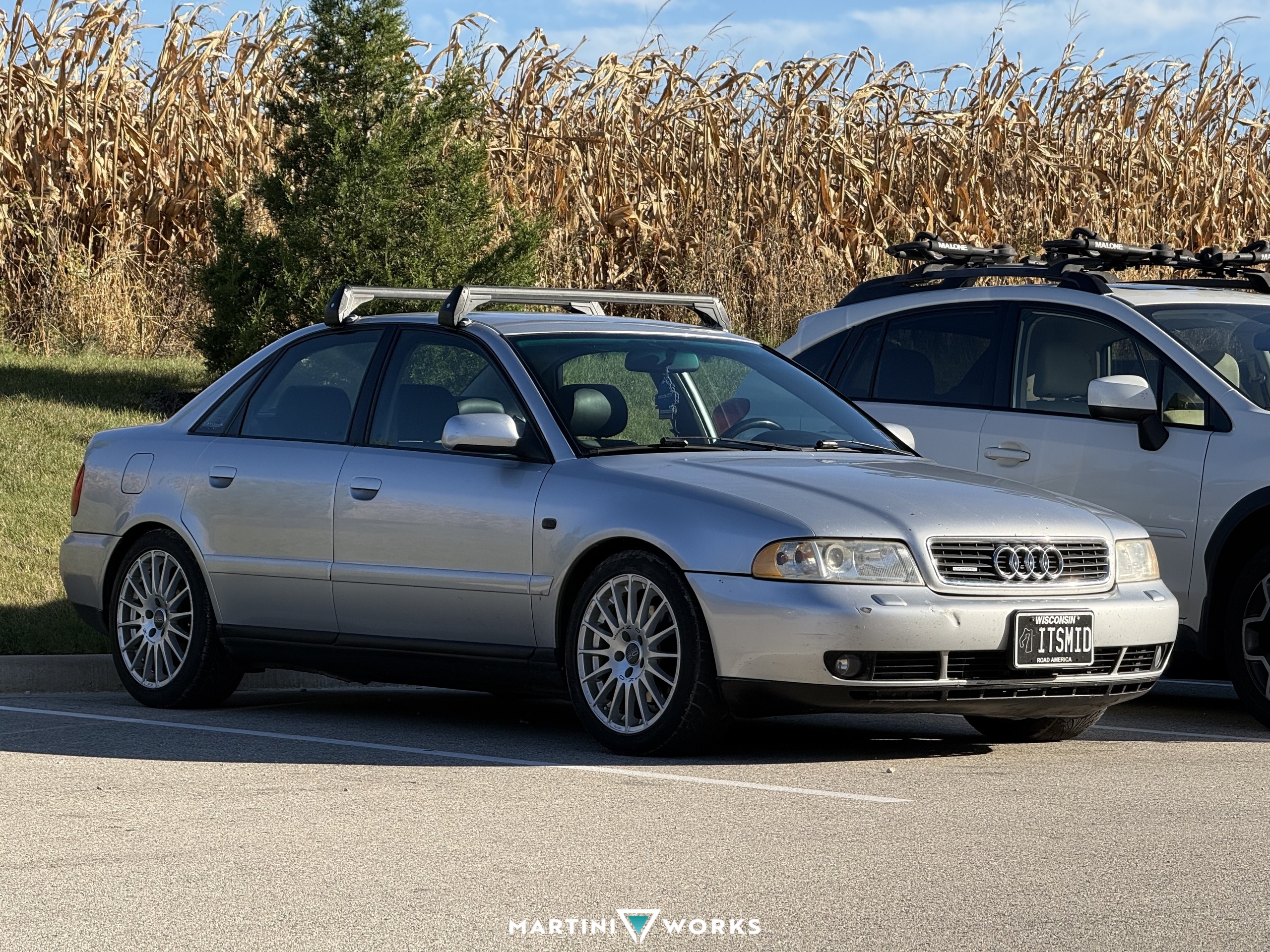 This B5 A4 came into my life way back in 2018. I was browsing Craigslist (I know... I'm old) and I found an add for this $1200 Audi A4. Description said the trans was bad but overall the car was in ok shape. I decided to go take a look at it and the car ran and drove fine, just wouldn't go into 5th gear. I negotiated down to $800 and took it home. Coincidentally while driving, I decided to try and force it into 5th. Wouldn't ya know, it was never bad to begin with. I did a bunch of minor repairs within the 1st year of ownership. Got it ready for winter duty. For the 2018 and 2019 winter seasons this car got me anywhere I needed to go. In 2020 I bought a pickup truck that would serve as an all year round daily. With no more room to store the A4, I sold it to a close friend who also put it to use as a winter daily. He drove it for a year or so. Then it got sold to another close friend of mine who let it sit in storage for about a year without being driven. I was helping him one day move some things around and he offered to sell it back to me. Without hesitation I said yes. The car was in pretty bad shape at the time. Had some new damage, interior was starting to show its age, clutch was acting up, it needed some love. Over 2023 I started to bring it back to life. New bumper, fender, swapped the entire interior from grey to black, new suspension, new brakes, fixed the AC, and a ton more. Then one day in November the timing belt decided to exit the chat. With that, I had bent valves and a motor that needed a lot of work. The car sat for most of 2024 while I slowly collected parts for it. Finally in late 2024/early 2025 I was able to swap in a new motor with a whole haul of parts. New (used) motor, new turbo, new clutch, new axles, new PVC parts and more. Started daily driving the car full time in 2025 while continuing to make it nicer and nicer. In fall of 2025 I got a cheap commuter that was much better on gas and decided I was going to make this car more of a weekend/summer fun car. My main goal with it is to keep it as OEM+ as possible using period correct parts. The parts aren't easy to find but I'm slowly starting to get there. OEM roof bars, period correct OZRacing SuperTurismo GT wheels, SoloWerks Coilovers, Borla Exhaust, ect. I'm super excited to start bringing this to shows, cars and coffee events, and just cruising in general.