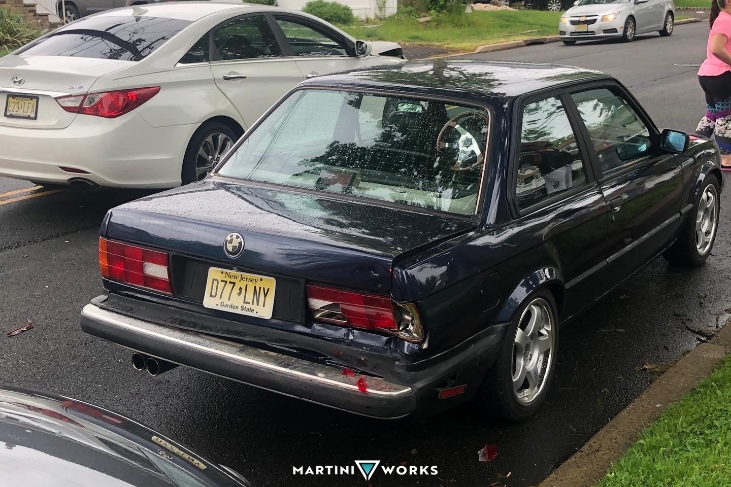 Picked this one up in barely running condition back in 2019 from Syracuse, NY. At the time, it had a poorly done respray of the factory color (Royalblau Metallic). After getting it running, I immediately did an auto-to-manual swap and lowered it on Spec E30 suspension.