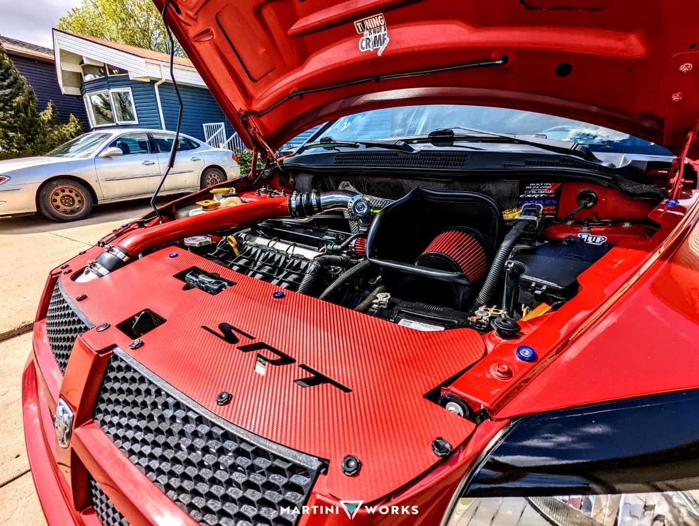 Bought the car in May of 2021 from someone that had no idea how to even maintain a vehicle let alone a higher-performance one. Had to drive 5 hours away to even see the car, made the deal and left with the car got 45 minutes away from the PO place car starts overheating, so I pull over shut the car down and pop the hood. The rad cap was venting so I knew something wasn't right thought the head gasket. Go to try to start the car huge puff of white and not a chance it will start. So call the nearest town with a tow truck and get it towed there. Oh, and it's already 11 pm and we still have a 4-hour drive home. Got back home late late, then had to get a truck and trailer to go pick the car up on the weekend. Got that shorted out was on the road at 3 am got there, then got the car hooked up on the trailer and was back on the way home by 9 am. So made good time, and had the "new" car in my shop by 1 pm that day. Had the head off by dinner time and found 4 cracked sleeves... Hence her name. Now the rebuild... Don't ever try to source an SRT-4 block for a caliber. You will get some pretty insane prices thrown at you. I went the N/A route after I did some research, AKA facebook group and met some amazing people that walked me through it. So got a N/A block OEM Forged rods and pistons and crank, bolted her all back together after waiting for a month for parts and had it running by June 20th, 2021. Haven't looked back since the car has been an absolute beast. The best part about the car being down for a month meant I was able to paint correct the whole car needed a 7-stage correction and paint the front bumper. Then Ceramic/Graphene coated the whole thing. Painted the OEM wheels added a splash of red to the SRT and eyes to the ram heads.