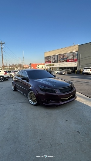 I've owned this car for almost 16 years, since my Sophomore year in Highschool. It's gone through many changes. Started life as an automatic v6 Accord. Bought it in Colorado from a used car dealership. Had always wanted a car I could build like the cars i was building on NFS and Forza. this has been my learning platform. I've been experimenting and testing since its popped in my head. Started racing early without telling my parents. Going down to Colorado to enter into Auto X events. This was the first car I ever got seat time in. And from then on, I've been modifying it with tracking it in mind. Started with better wheels and tires. Then moved onto coilovers. And then started making engine mods. 10+ years I drove and raced it with an automatic transmission until it finally went out. Then I swapped it with a 6 speed from an Acura TL. 2 years later, I popped the original J30 v6 at an AutoX event. It now has a J32a3 from a 2005 Acura TL. Years of this setup and tuning go by and I finally put it on e85 with 1000cc injectors and not even a week later I boosted it. It makes a conservative 400whp roughly on 9lbs of boost with an ebay gt3582 Turbo on a completely stock J32. Full 3in turbo back exhaust to a Vibrant fart can. Sits on 275/45/18 on a 18x10.5 Enkei RPF1 wheel up front and out back, a 255/45/18 on a 9.5 wide wheel. Full Tein coilovers all the way around. Megan racing camber adjustment front and rear. Moog rear toe arms. TL Type S front knuckles with TL Type S Brembo brakes. Honda Pilot rear calipers and rotors. Tuned on Hondata Flashpro. Corbeau drivers seat. Hybrid racing billet shift box and cables. Scion FRS "widebody" kit. Rain gutter sideskirts. eBay Mugen wing. Cheetah Wrap in Blue satin. My homie and I got this car boosted and tuned a couple months before he passed away. He was known as Copilot Kyle. He built his own mid engined Acura integra with a built B series. This car means the world to me and its by far the most troublesome and most fun thing I've ever driven/built.