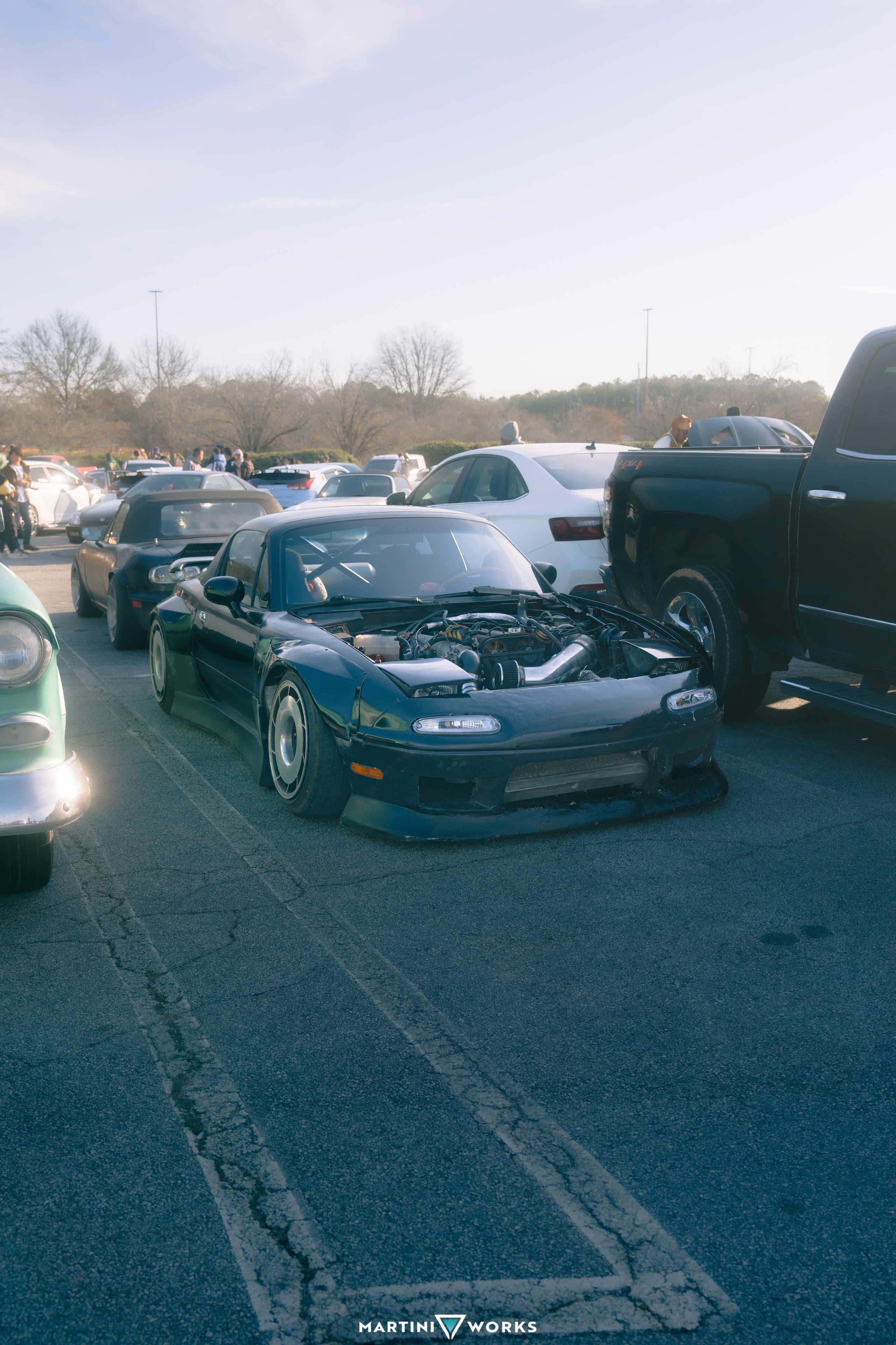 Bought from a tow yard as a non running red car, decided to just boost it off the bat with a big boy turbo. Built the engine top to bottom. Tore the entire car down and started fresh. Decided to go widebody cause why not and run 84 corvette salad shooters. Custom cut and modified kbd sideskirts to fit the kit and painted the whole car myself for the first time painting any car. This is my first car I bought when I was 18 and just getting into cars so this car taught me alot. I do wish I knew a little more as far as engine building especially how important clearances and torque specs are.