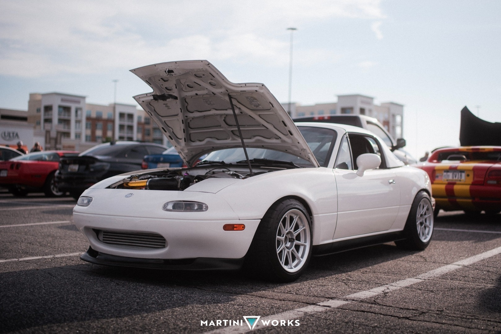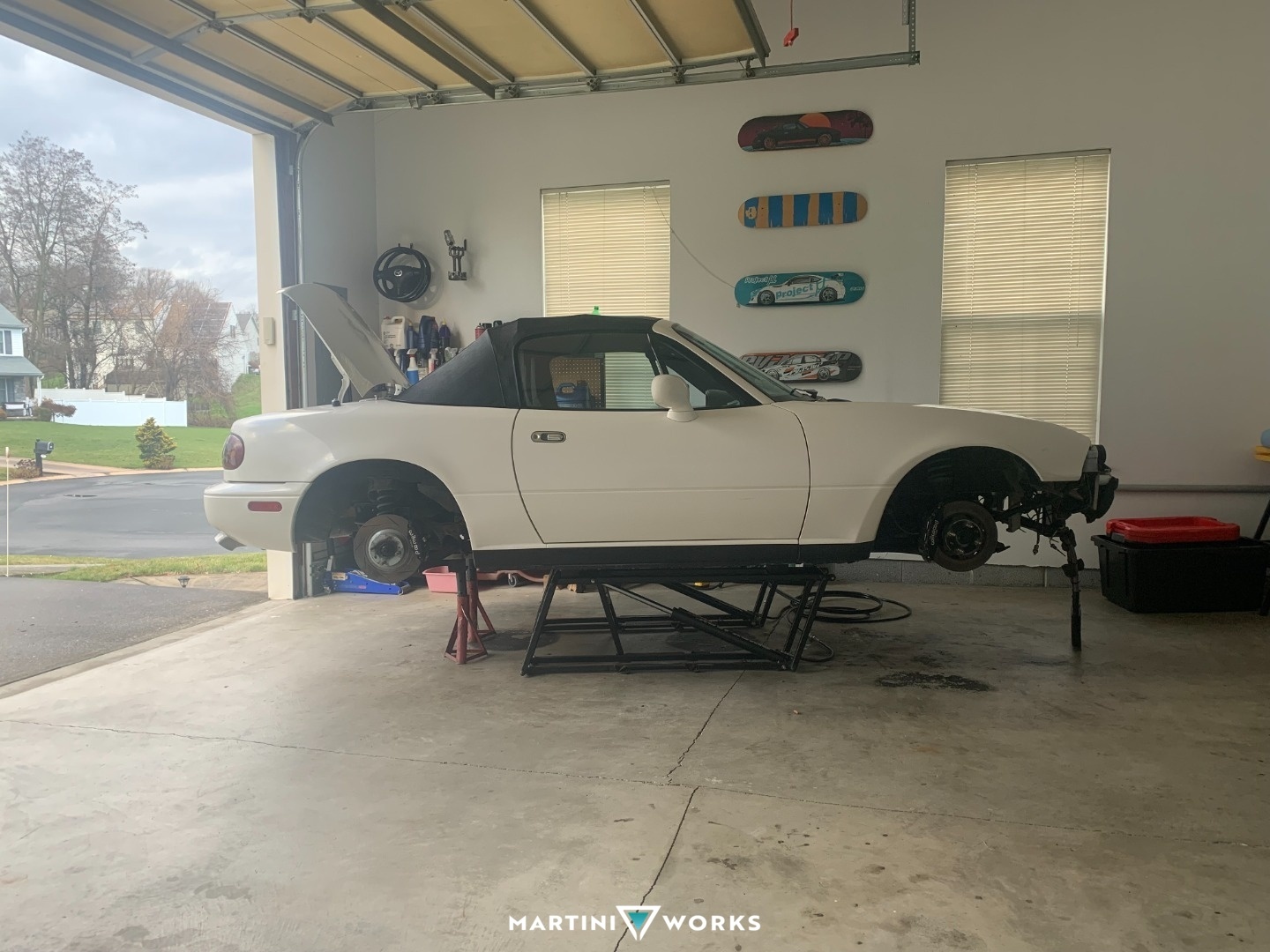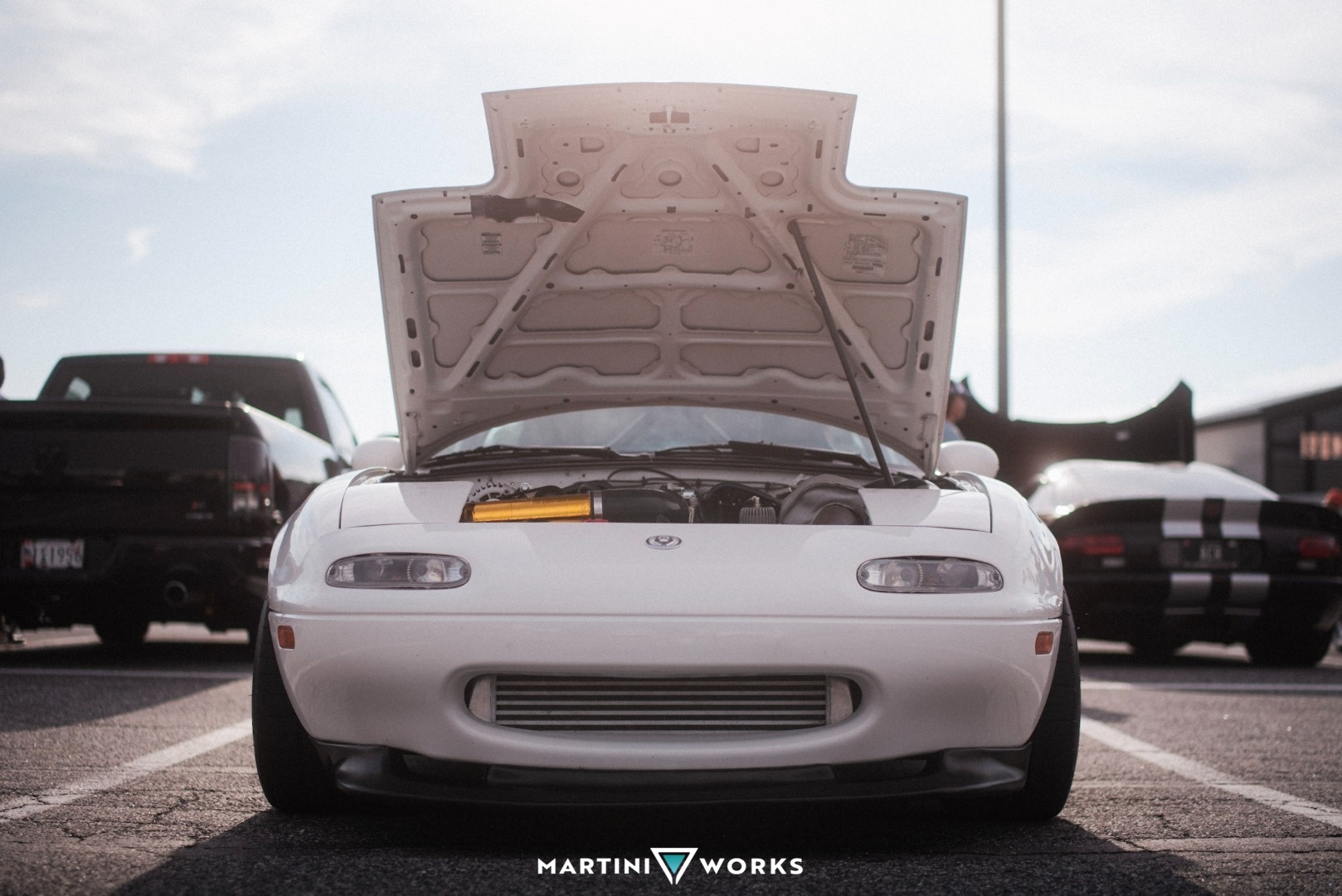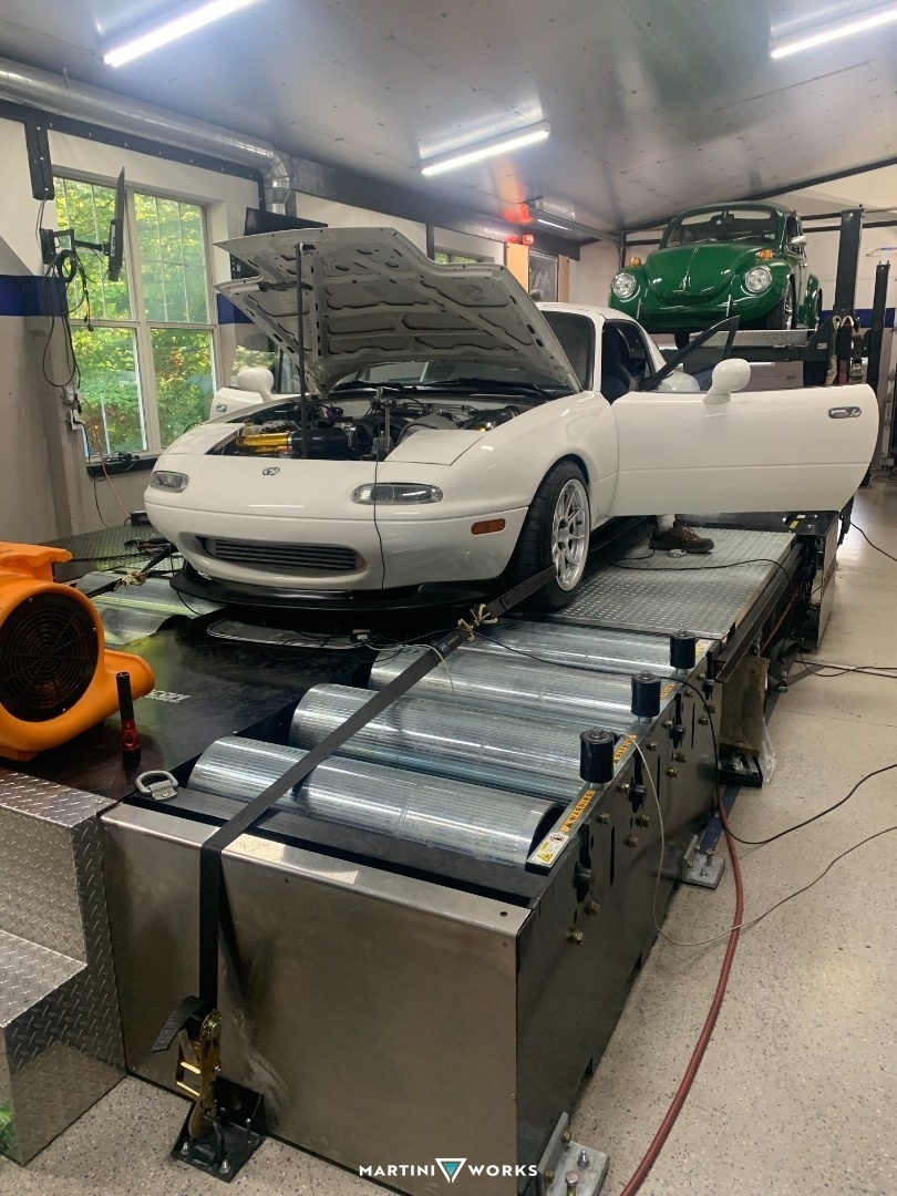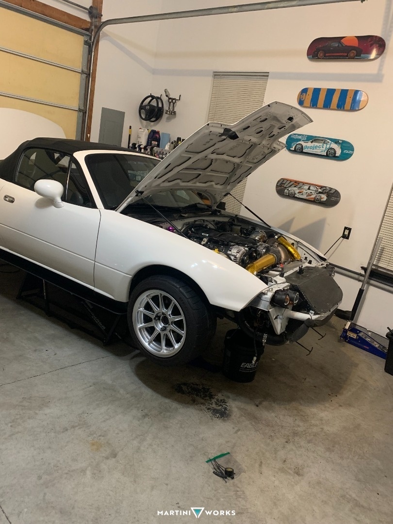 I bought this car with the swap completed, driving and running, thinking it was going to be a small project that just needed some TLC and fine adjustments to be complete. Upon getting it home and doing an oil change I found lots of metallic flakes, as well as a coolant leak. So the engine came out and all maintenance items were replaced and engine gone over. Luckily no huge issues and after fixing some minor issues the engine and trans were back in the car and it slowly came back together. Lots of custom parts and classic homebrew garage ingenuity fixed all the issues. All in all it took me about a year to get everything back together, with help from friends. And recently I was able to get the car aligned and dyno tuned, as it was home tuned and the tune was way off. While the car runs and drives now, I continue to fix some electrical bugs and look to start overhauling the wiring in the near future. Not sure the purpose of this car yet, but it's a great highway cruiser right now. Feel free to follow along on the journey of this car, and my other cars on IG at @miatacontent