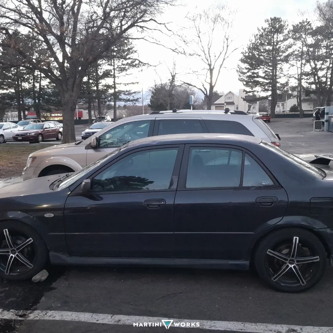 I've always wanted to build a mazdaspeed protege since I owned an 02 protege dx, so once I found this one I had to have it. In order to get the car I had to fly to Utah and drive the care home 10+ hours to co springs. On my way home I hit a rabbit that put a hole in my grill, ran over a dead deer that took out my fog lights, and got pulled over twice by Utah police.