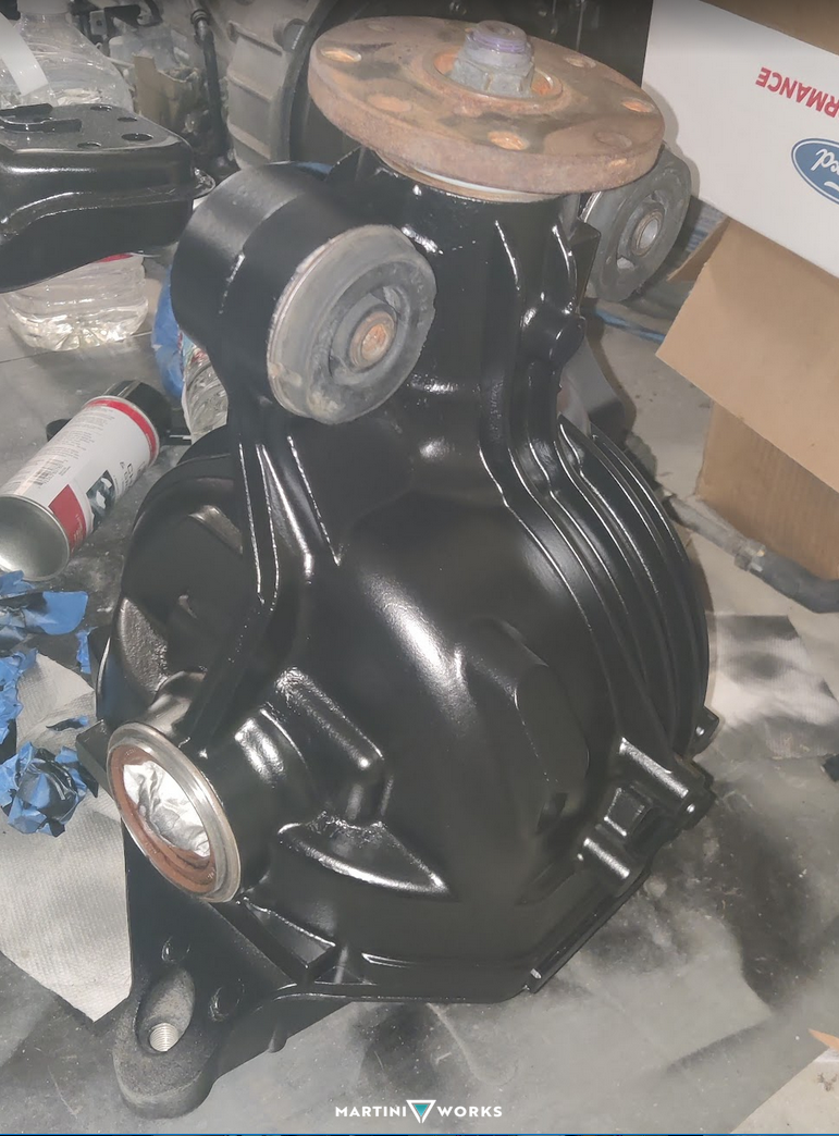 I'm doing this project ridiculously slow, due to lack of time, space and tools, but it'll get there. When all is said and done, it'll have the gm LFX engine, which should produce somewhere around 300hp at the wheels, depending on tune and a few other things. It will have a Camaro RS Mv4 Aisin transmission mated with a monster clutch, custom prop shaft, Ford 8.8 carrier with 3.73 gears and a limited slip diff, custom drive shafts, all new bushings, and I'm reconditioning the paint on subframes and suspension parts, being sure to get rid of all signs of rust.