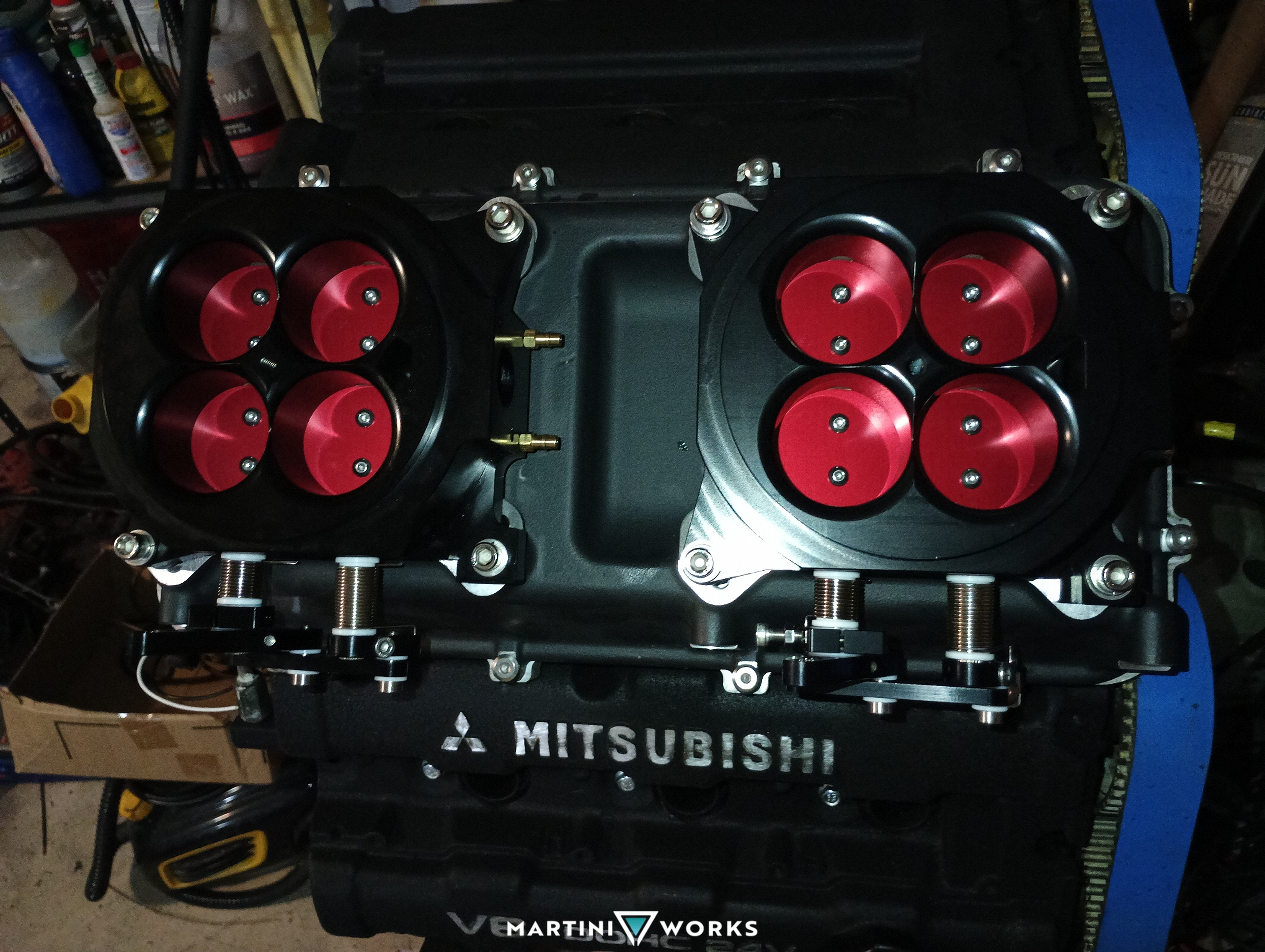 Almost everything in this car was a first for the platform. First one to use 12.5:1 pistons, First one to use an LS intake plenum adapter, First one to use a floor mounted pedal box, First one to break the 300whp wall, Now its going to be the first one to use a holley 300-207 dual quad intake plenum trying to even out the airflow across all 6 cylinders and possibly get more power out of it. And should make it some what easier to tune with progressive throttle bodies instead of a big single.First one to have a completely custom braking system with hand-made brake lines, First 3000gt SL with a shaved engine bay.
