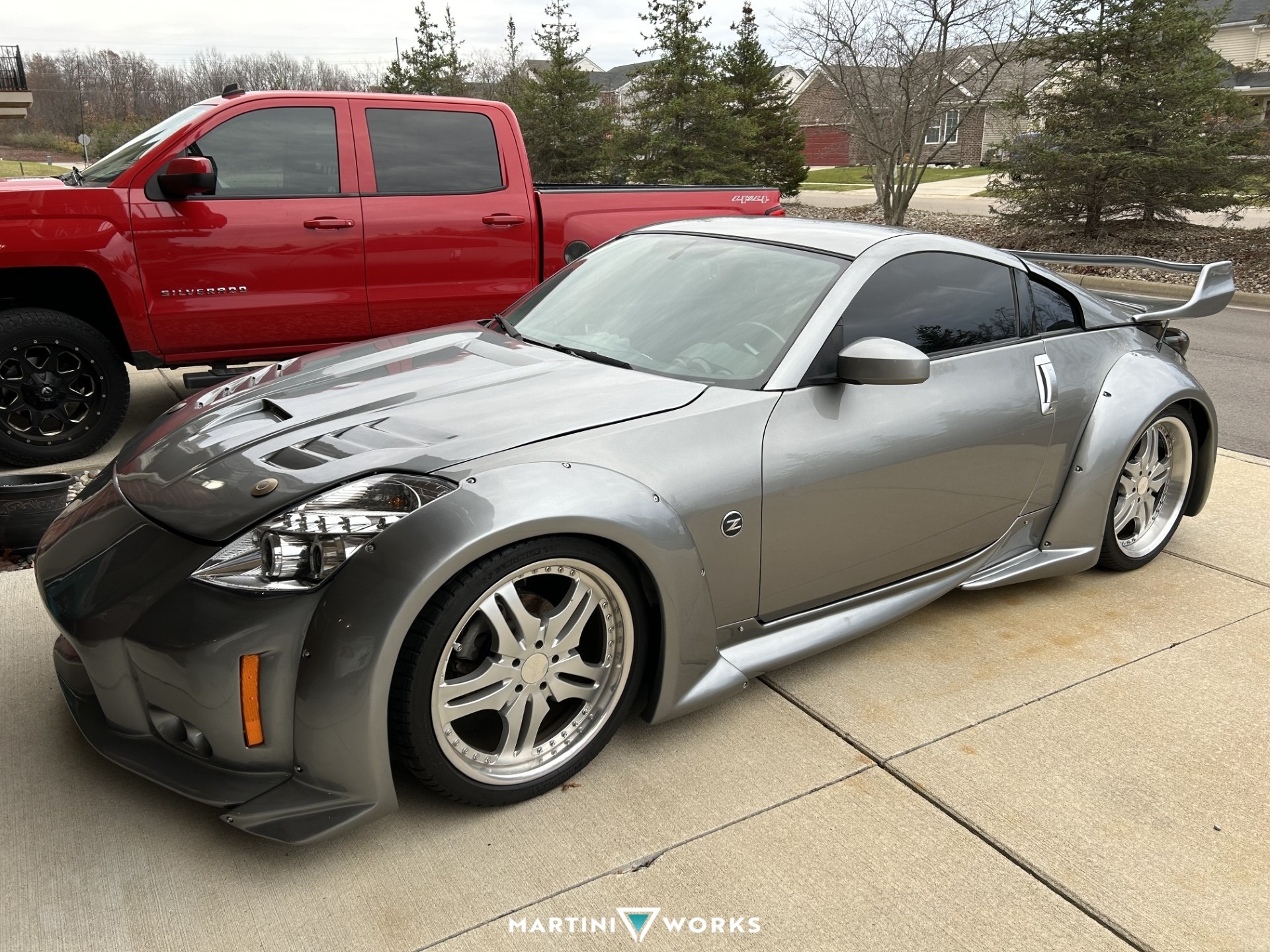 I am a gear-head at heart - always have been - anything with a motor has the potential to become unique! I fell in love with European sports cars at a young age and dreamed of owning a Lamborghini one day. Jump forward to 2020 and I'm ready to get serious about having a unique sports car that I could actually afford. I always liked the Porsche 911 and 944 Turbo, so I spent time looking for a solid platform to start a build, but found that what was out there was over-priced and Porsche parts are not cheap either. I was also a fan of the Nissan Z series, more so the 350Z, for its body styling and modification potential. So I went on a search for a starting platform for my build. I found it mostly by accident while on Ebay. The photos of the car looked fantastic for condition but it was listed as having major engine damage. It was located in Georgia (I'm in Michigan), so I was happy to know that I'd have a vehicle with little to no rust (and it has NONE). I purchased the car and had it shipped up to Michigan, and the project began! First order of business was to get the motor out and tear it apart to see what was required. Coolant in the oil and lots of signs of overheating but no cracks....until the final casting cover at the base of the block was removed and the crack was found. No rebuilding this one. I purchased a JDM VQ35DE long block as my starting point. As part of my rebuild I port matched the upper intake, installed the Kinetix V+ upper plenum, 75mm throttle body, Injen Cold air intake, went with one-step colder plugs and t-stat, Moroso aluminum race radiator, oil cooler, Z1 Oil catch can system, headers, baffled test pipes, full Nismo dual exhaust, Lightweight flywheel, street performance 5-puck clutch and Z1 engine hose kit. Prior to doing any of the body conversion, the car was lowered using Full front and Rear ISF Performance Street Series Suspension, with H&R Coilovers, and 20” Axis VIP wheels with Michelin Pilot Sport 285/30 (rear), 255/35 (front) tires filed the wheel wells. My vision for the body was born after I installed a Duraflex Vader 3 rear spoiler. The rest of the car now needed to take on the attitude and boldness that the wing was generating. I looked at a lot of different wide body kits and none of them made the impact I was wanting, except for the Vader 3 kit – even though I was avoiding it with everything I could. Everything I had read from others was to stay away from Duraflex as their molds were poor and required a TON of modifying and repair to make them fit and look good. So I spent months looking everywhere else for what I wanted my car to become, but never found it. I pulled the trigger on the Duraflex kit telling myself, “it can’t be as bad as they are making it out to be”, and “you only hear from the people that are unhappy with a product.” Well, they weren’t wrong! Coming out of the box the parts didn’t look too bad, but as soon as I started fitting them to the car it quickly became apparent that if I was going to proceed with this kit, and I almost quit several times throughout the build, it was going to involve hundreds of hours (250+) of body work to make it right. This build didn’t have a deadline, so I dove in and got started. Every single piece required MAJOR fixing (adding fiberglass to complete the part so that it would even work, creating mounting points to attach light housings, and attach the pieces to the car, grinding and reshaping pieces to fit, and that was all just to rough fit it. The panel finishing was just as big of an undertaking. Like I said, I almost threw in the towel several times along the way. Every panel needed significant finish work, both to correct appearance and final fitment before paint (I cataloged most of my build with photos, mainly for myself). TIP: If you don’t have really strong body work skills (fiberglass, plastic, metal), and lots of time and patience, don’t do this kit from this manufacturer. I can’t say anything else about any of their other kits. The overall feel of the car still wasn’t finished until I topped it off with Carbon Creations Vader Style fiberglass hood…..the look was now complete! During the wide body fabricating, the fenders were cut, welded and sealed. The rear was upgraded with 370Z axle shafts and hub bearing assemblies, and wheel spacers were added to push the tire out to fill the new width. So many other things were upgraded or added along the way: LED headlights and tail lights, custom mounted dual Halo LED fog lamps in the front fascia, Workshop12 TESLA screen control on the interior, and many more. The entire build took about 1 1/2 years.