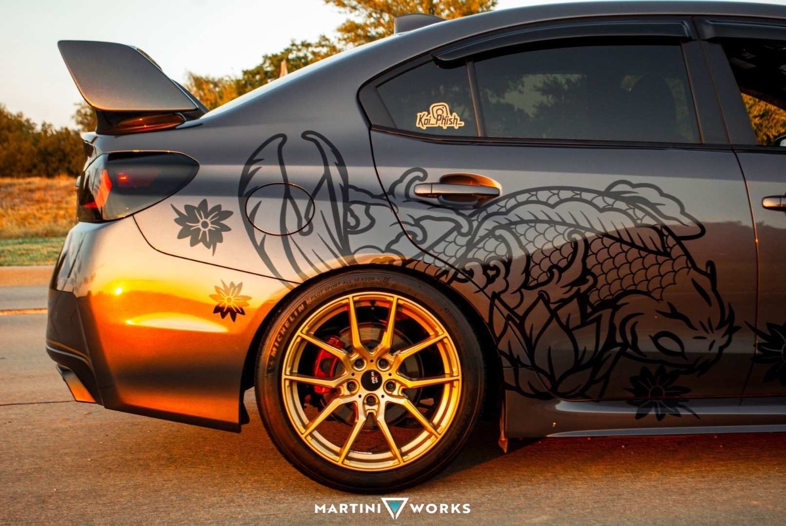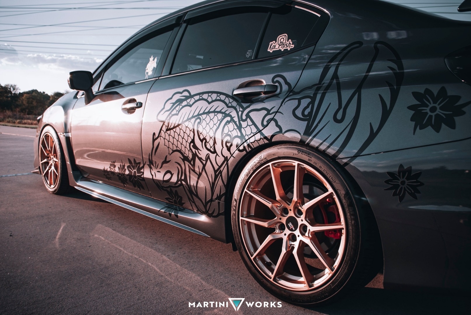Fun Fact: In Japan there is a urban legend about koi fish's. They're born in a pond and if they climb all the way up the mountain the Gods reward them by turning them into a dragon. So when you see people who have Koi Fish tattoo this is what it means. If the Koi us going up a person's body it means they're trying to over come a obstacle in their life. If a koi fish is going down, it means they have overcome their obstacle. For me I overcame that battle. Growing up I watch a ton of Fast and Furious movies just like any kid born in the 90s. My favorite movie of the franchise is Tokyo Drift and one of my favorite all time cars was DK's 370z. Surprisingly I didn't get a 370z and because I wanted to have kids in the future I wanted to buy a car I could use no matter the situation so I ended up buying a WRX. Originally I wanted to buy a STi, but I have a big issue of buying used, I always like to buy new. After months of debating of whether or not i should buy a used STi or buy a new WRX, I saw DK's 370z and I saw the STi Logo, that's when I realize, Koi is a 3 letter word, and STi is a 3 letter word. I could customize my own car and build up and make it a one of a kind WRX. A KOI edition.