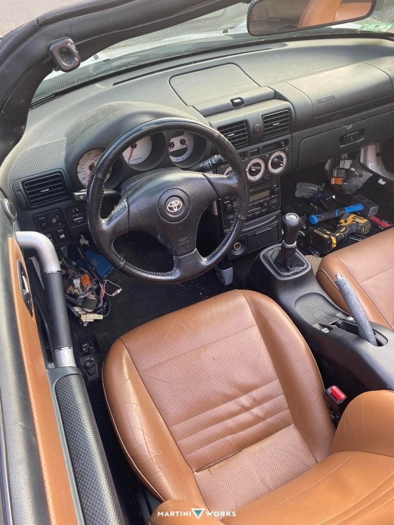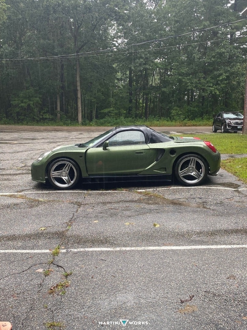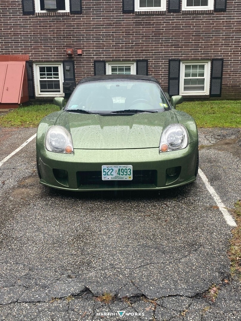 This car was purchased from PA. I drove 12 hours roundtrip to get it back to my place. After that the car itself was white but the doors were different colors, the front bumper and rear latch were silver and the side mirrors were a matte black color. The car itself was not flattering in the slightest since the body itself isn't well suited for the size of the headlights. I ordered a widebody kit made in Thailand and waited about 8 months to get it shipped overseas. Don't do it. Once I got it, the bodywork began. I am NOT a bodywork master nor have I even done it in my life. After doing a solid week of research on YT, I figured it wouldn't be too bad........ FALSE. It was so time consuming I probably fell in love and out of love with the car a total of 10 times during the bodywork process. I finished it the best I could for the time being, and replaced the entire rear suspension with Battle Version parts. I added Fortune 500 Coilovers and slammed it. I bought a parts car (2nd MR2 Spyder year 2000) to replace basically everything that had major dents or damage. Replaced ALL the body panels on the car minus the driver door so the parts car got its worth. After everything was fitted with the widebody, I then got wheels for the car. OEM are 15x7 I think? I went with 18x9.5 +35 Square setup Anovia Treble wheels to give it a period correct look. (Love the Super Advans) These wheels were wrapped with Michelin Cross Climate 2s - 255/35/18 Square Set up. To fit these wheels, I modified and cut/welded the chassis and front wheel wells. Now they have enough room to turn full lock and not rub. Running 36-38mm 4x100 to 5x100 Spacers from Motorsport Tech. Been driving the car hard on this setup and no problems yet. Love taking turns without the car rocking at all. The wider wheels really plant the car down. K24 Swap is coming to the car and the engine is already being built by 4pistonracing. Nothing crazy but I want the car to make around 330-430hp at the wheels. Looking to keep the 5 speed and add LSD to the car. Yes its a ton of money being thrown at the car, but I couldn't have asked for a better platform to make reasonable power with massive weight reduction on my side. Best decision for a car I could have made.