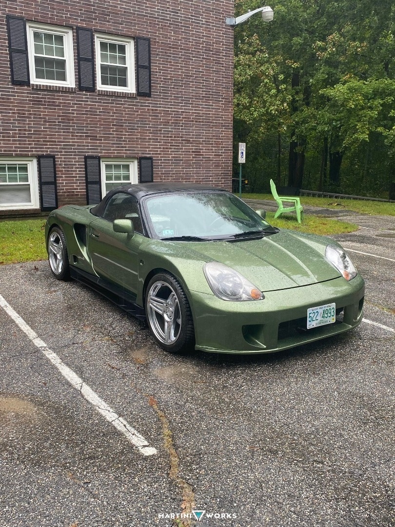 Took my shot at a cheap fun car with lots of potential. Mr2 Spyder Monocraftx Widebody. Did the bodywork myself with the help of my wife (Motivation). Now its a F8 Green Machine. Truely is a Street Legal Go Cart. Learned to drive manual for the first time in my life with this car. Never going back!