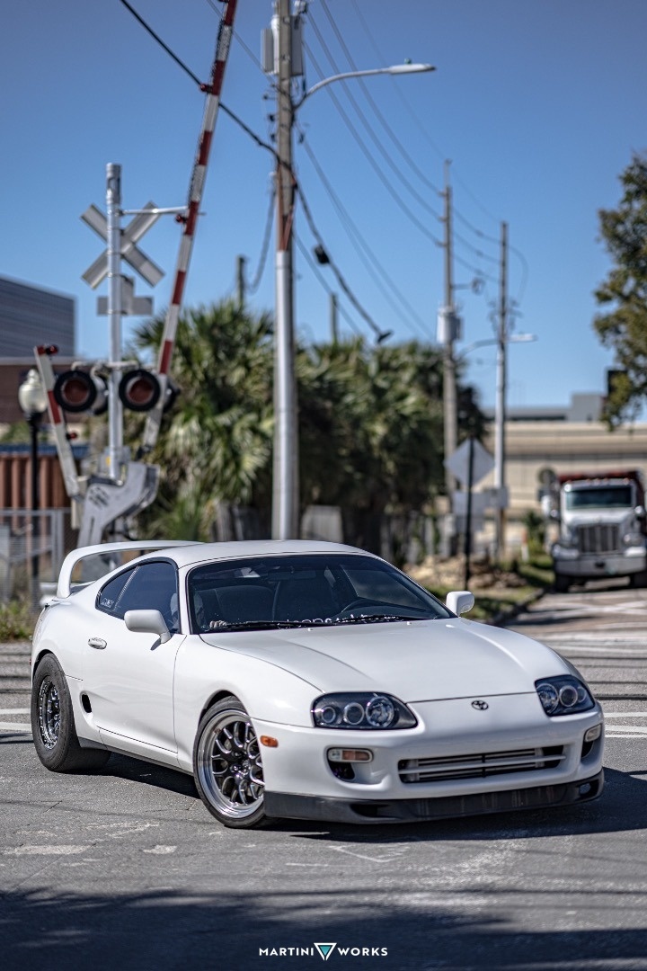Oh boy well I’ve had a lot of cars. But my goal was always to own a white 040 MK4 supra turbo 6spd and this is that car. I guess I should start with how I ended up with it after selling my last supra I decided I wanted to buy an R34 found an awesome one that was a GTT fully converted to Gtr minus the transmission picked it up put about 10 grand into it. Drove it around and enjoyed it shortly after I got it running I received a cash offer that I could not turn it down so I sold it and then purchased a launch edition MK5 supra after about two weeks, I realize that this thing was automatic boring, and definitely not my speed. So I started hunting for another MK4 ended up finding this at Brooklyn Auto sales. Adam, the owner was a breeze to work with ended up picking it up and then the crazies started lol I told myself all I was going to do was coil, overs, wheels, tires, and exhaust it already had a single turbo and an standalone. But if anybody who’s reading this realizes the rabbit hole, I was about to go down you know where I was at drop the car off to my trusted shop MT fabrication, and before I realized what I was doing I had already dropped 10 grand wiring specialties Haltech elite 2500 Ecu 1760 cc injectors, billet tensioner Haltech coil on plug set. Among other things. I really liked how the car drove but I wanted to get more power and the 6262 that came on the car was not going to cut it so back in the shop she went a month later brand new PHRS3 manifold, twin tile MVR 44 mm waste gates brand new precision, 6870 turbo one piece, driveshaft shop, driveshaft, brand, new brakes, all the way around Haltech ic7 display and radium triple pump hanger with three hellcat 500 pumps Dash 10 lines – eight return. Turn the boost to about 30 pounds and now we were cooking went out couple nights had a lot of fun got beat by a couple of people and realized I need more power, so I went back to MT and we turn the boost up to 35 pounds on a stock bottom end with 100,000 miles. Needless to say my rod said no bent 4 rods out having some fun. So the current state of my car is it Mt fabrication awaiting It’s new motor. Should be done some time next month is what I’m told. Decided since it was down time to update a lot of parts went with a pro mod hypertune intake, manifold. Billet valve covers GSC 2 cams. Titanium valves, bronze guides, shimmless buckets. Ported and decked head the bottom and I’m still trying to decide what to do.