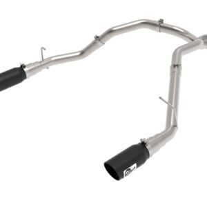 This DPF-back exhaust system is constd of 3" mandrel-bent 409 stainless steel tubing for maximum strength and durability. Finishing off this exhaust system are dual 5" diameter black 304 stainless steel clamp-on exhaust tips. The tips features an aFe POWER logo plate riveted on for a unique style. Utilizing a factory style flange and hangers this system is a direct bolt-on system, which requires no cutting or modifications for a hassle-free installation. Utilizing state-of-the-art computer-aided design technology, this exhaust system is designed for custom, high tolerance factory fitment. 100% MIG-Welded for race-proven strength and durability.