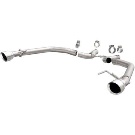 The MagnaFlow Ford Mustang Race Series 19345 doesn't leave any performance on the table with a race-ready, light weight, dyno-proven design ready to help your 2.3L, 3.7L 2015-2022 Ford Mustang take on any pretenders, whether on the track or the street. Exhaust kit 19345 is engineered to produce our powerful, resonant signature exhaust note at VeryAggressive exterior and Aggressive interior sound levels with an axle-back layout that replaces your vehicle's exhaust components from near the rear axle on back. Please check to ensure compliance with local noise regulations. This Ford Mustang exhaust kit features fast-flowing mandrel bent 2.5in. diameter main piping that ends in a Dual Split Rear exit with 4.5in. Polished Welded-Double Wall-Angle Cut-Folded Edge tips. Extensive 3D scanning during development and the use of advanced CNC precision robotic manufacturing techniques ensures that 19345's direct-fit design fits so perfectly that you can easily install the system yourself. The durable, corrosion resistant stainless steel construction of exhaust system 19345 is backed by MagnaFlow's limited lifetime warranty.