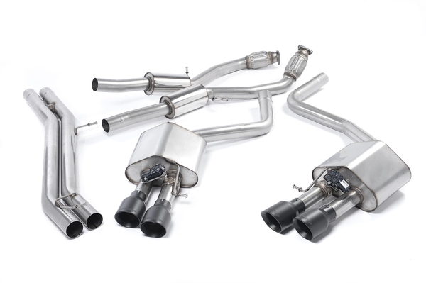 Milltek Cat Back Resonated (quieter). Cerakote Black Tips - ECE Approved for Audi S8 D4 4.0 TFSI quattro Tiptronic (2013 to 2018), cerakote black Tips - SSXAU464 SSXAU464-1