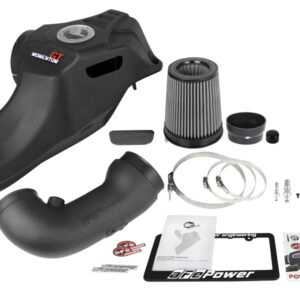 Large Three Layer Performance Air Filter:Momentum’s unique filter-to-housing interface was built to feature the largest air filter possible. This 8” tall 360-degree radial flow air filter features our oil-free Pro DRY S media with three layers of synthetic media for maximum convenience. Its progressive layering provides great filtration efficiency and dust holding capacity, while not requiring the use of oils. This media is best suited for street use. Its inverted top makes for more filter surface area, resulting in longer service intervals.Unique One-Piece Housing:The one-piece sealed housing, constructed of heat-resistant cross-linked polyethylene (XLPE), draws styling cues from the Mustang's body. It incorporates the OE air inlet with no additional hardware and features an auxiliary air inlet that captures additional air from the inner fender. Its patented filter-to-housing interface design minimizes the total number of parts, making for an easy installation. A large, clear sight window allows for hassle-free filter inspection, without having to disassemble your system.Dyno-Tuned Intake Tube:This system features a high quality, computer-designed, dyno-tuned intake tube to achieve maximum power gains while maintaining a perfect fit. Its XLPE material is heat soak resistant and extremely durable.Premium Components:Momentum GT intakes are designed with fewer parts for a fast and easy installation. This is a direct fit intake system that utilizes factory mounting points and requires no cutting or modifications. Premium T-bolt clamps, couplings, and all other hardware is included.