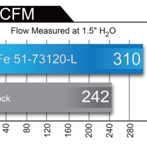 This intake system utilizes oil-free, large 7" tall conical 360 degree radial flow performance air filter with 3-Layer progressively finer porosity synthetic media for maximum convenience. The smooth one-piece sealed housing is used to eliminate the use of multiple-piece housings and ensure the coolest air intake charge available. A large, clear sight window is used for a hassle-free filter inspection and an aggressive style. Dual mandrel-bent powder-coated wrinkle-black aluminum equal length intake tubes are designed with an H-pipe to balance intake tube pressure and maximizes airflow and velocity. Also included, an exclusive black riveted aFe Power badge. This is a direct bolt-on kit that requires no cutting or drilling on factory parts.