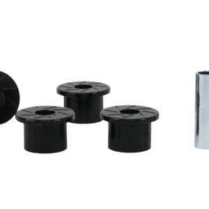 A critical service item for any leaf sprung vehicle. High kilometres and heavy load carrying causes excessive wear on rubber bushings. Whiteline's signature black bushings are made tough and offer outstanding abrasion resistance, high load bearing capability (4WD's, utes and towing), flexibility, increased tensile strength and chemical resistance to oil, grease, ozone and weathering.